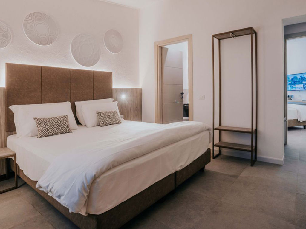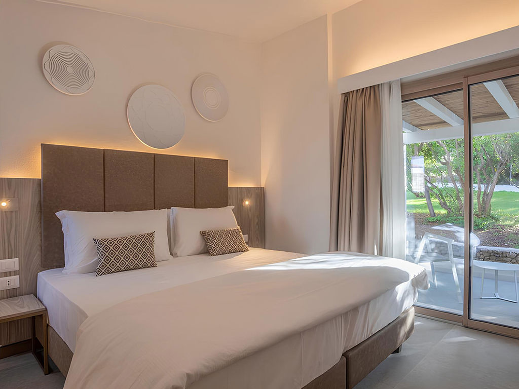 La struttura si sviluppa come un Resort diffuso immerso in giardini curatissimi puntellati da piante tipiche della macchia mediterranea. Le camere sono ospitate in piccoli edifici collegati tra loro da vialetti in pietra: quelle al piano terra offrono un piccolo patio privato, mentre quelle al primo piano una graziosa veranda, entrambi arredati con tavolino e sedie. Possono ospitare da un minimo di due persone a un massimo di 4 adulti nelle Family Suite.
